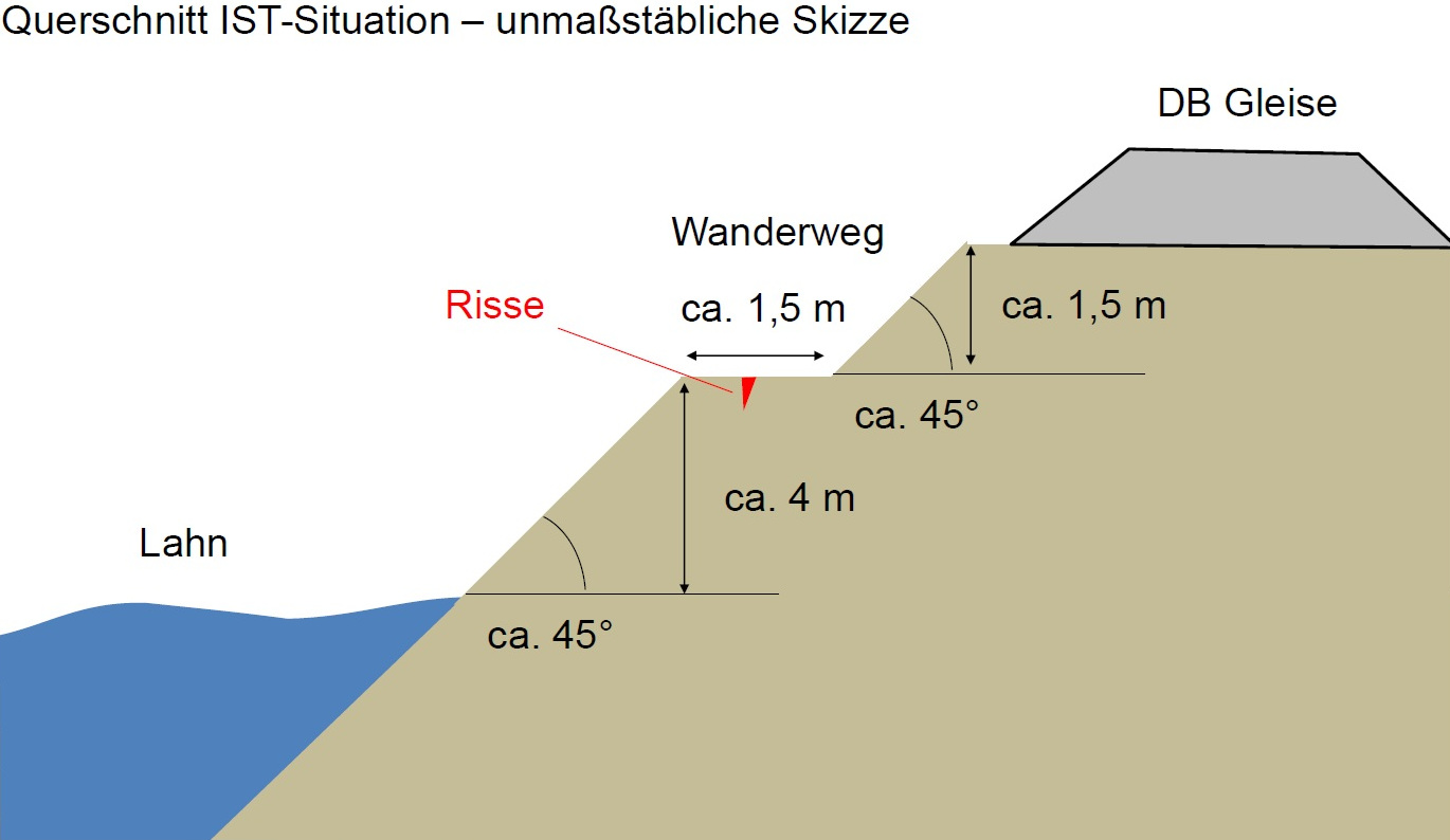 - Begutachtung von Rissen oberhalb der Flussböschung der Lahn